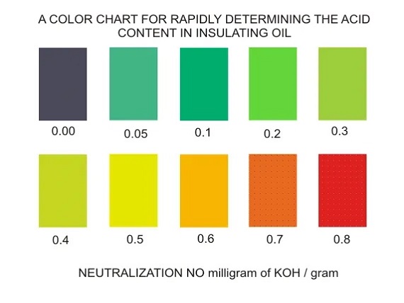 Nếu kiềm thêm vào dầu máy biến áp nhiều hơn 0,3 mg trong 1 gam dầu máy biến áp, thì giá trị PH của dầu lớn hơn 7 và dầu máy biến áp trở nên kiềm. Dầu máy biến áp có giá trị PH dưới 7. Nó phải có tính axit. Bản chất axit của dầu máy biến áp có thể được hình dung bằng cách quan sát màu sắc của các dải khi nó được nhúng vào dầu máy biến áp.